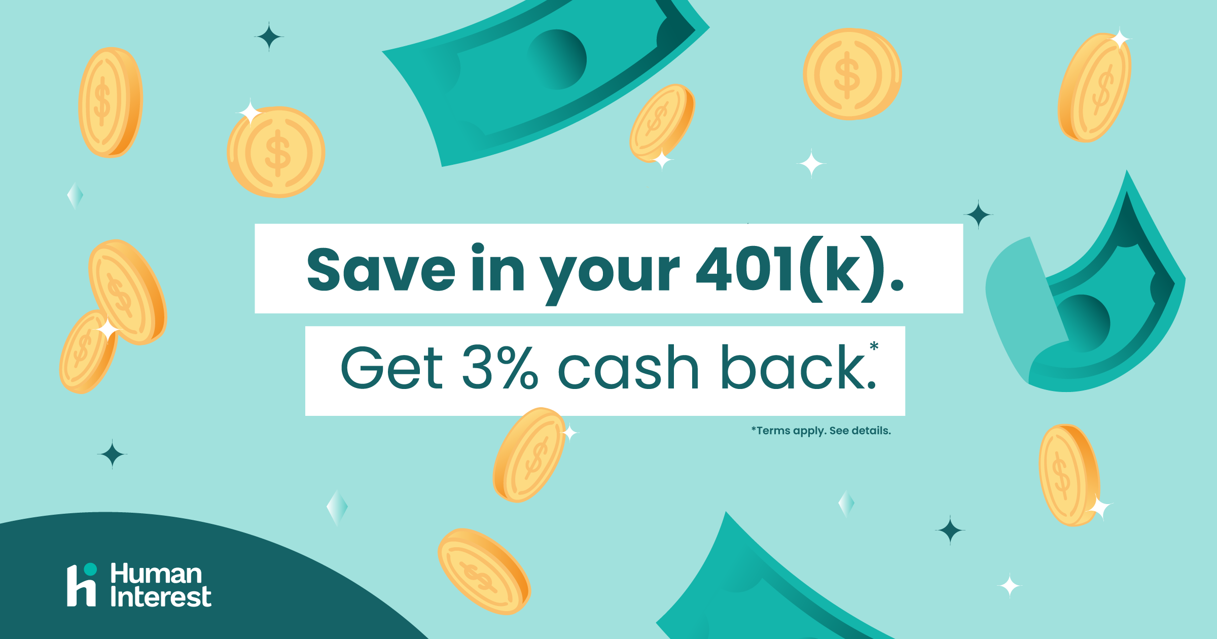 In addition to the cash back program, Human Interest’s (k)ickstart™ initiative will provide a robust and engaging financial wellness curriculum to all its customers, giving them valuable tips and techniques to help them save for their future and achieve a financially secure retirement. Read more here: humaninterest.com/kickstart.